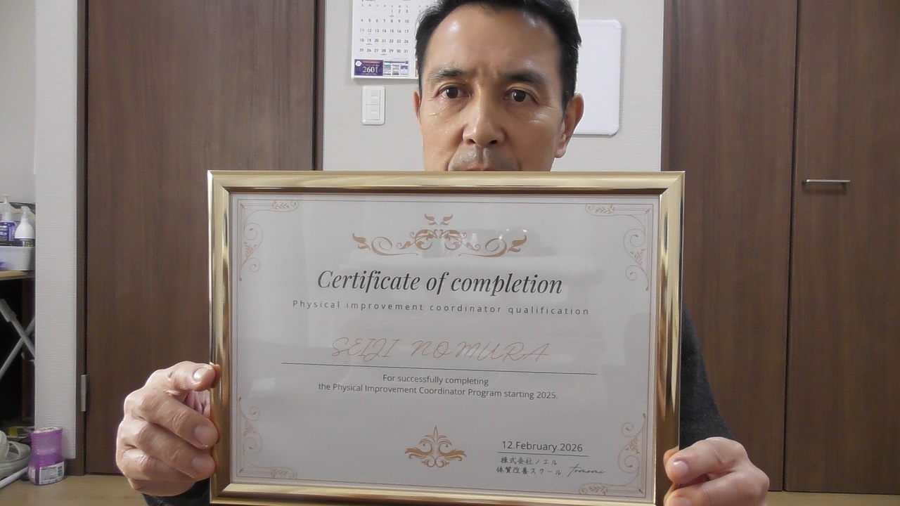 整体師としてだけでなく、健康運動指導士・日本体育協会公認スポーツプログラマー・中国伝統武功協会一級認定指導員・医薬品登録販売者・そして新たに体質改善コーディネーターの資格取得